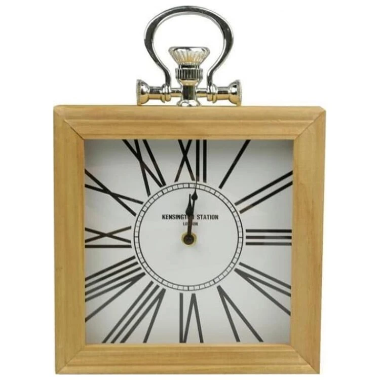 Ξύλινο επιτραπέζιο ρολόι λευκό τετράγωνο 24 x 24 cm