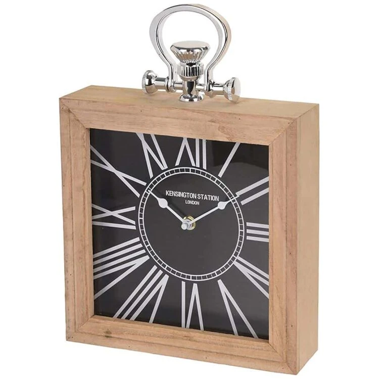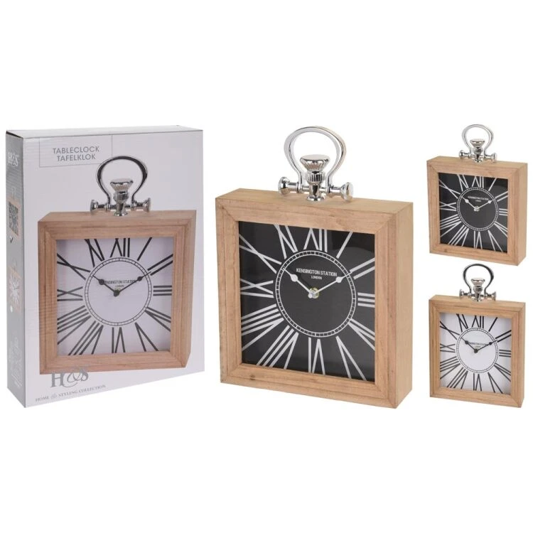 Ξύλινο επιτραπέζιο ρολόι μαύρο τετράγωνο 24 x 24 cm