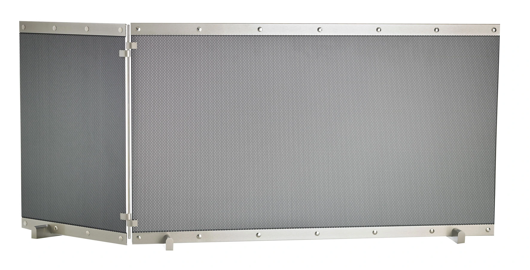 Κάλυψη τζακιού με σήτα με πολύ μοντέρνο design σε χρώμα νίκελ ματ/χρώμιο.