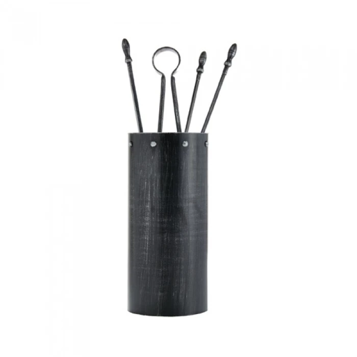 Κουβάς με εργαλεία τζακιού No 0671-K05 σε μαύρο πατίνα ασημί.