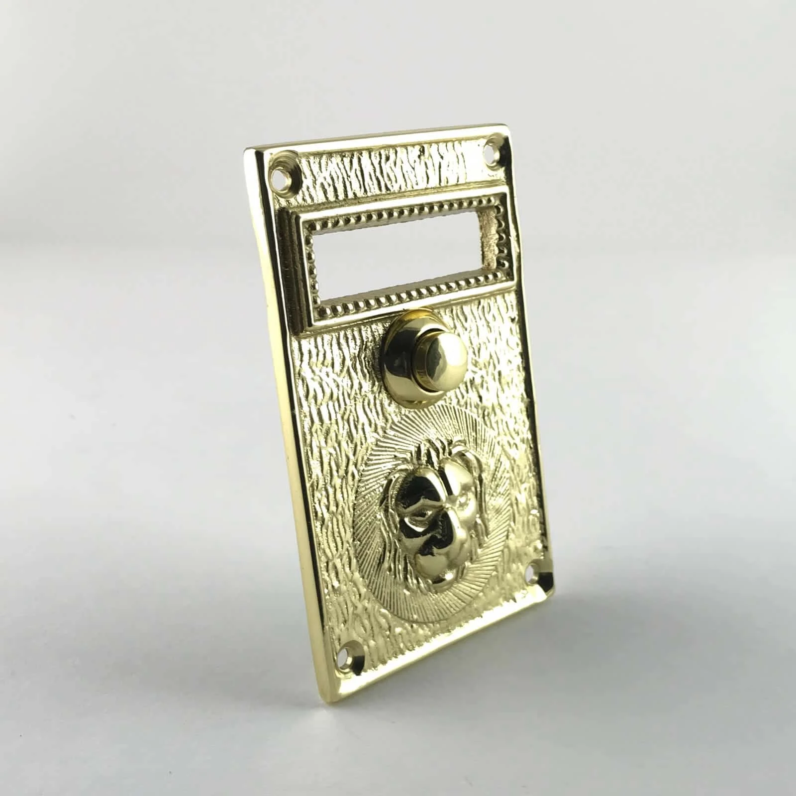 Ορειχάλκινο κουδούνι πλάκα με ανάγλυφη πρόσοψη λιονταριού.