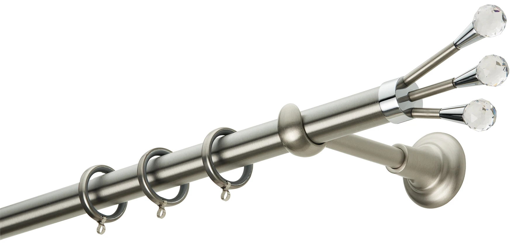 Κουρτινόξυλο μεταλλικό ίνοξ με διάμετρο σωλήνα Φ 25 και κρύσταλλο διάφανο.