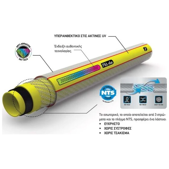 Χάρη στην ειδική πλέξη αποτρέπεται το τσάκισμα και η ροή του νερού παραμένει αδιάλλειπτη.