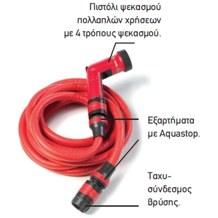 Διάμετρος: Φ5/8” – 15mm, μήκος: 25 m, πίεση (bar): 8, αντοχή (bar): 25