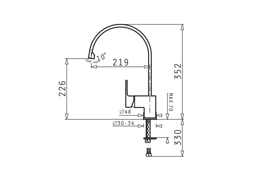 Αυτήν την αναμεκτική μπαταρία κουζίνας Arioso της εταιρείας Pyramis μπορείτε να την τοποθετείσετε είτε στον πάγκο της κουζίνας, είτε απευθείας στον νεροχύτη. Σε περίπτωση που η τοποθέτηση γίνει στον πάγκο, αυτός πρέπει να είναι από σκληρά υλικά για να αποφεύγονται οι φθορές. Σε διαφορετική περίπτωση η τοποθέτηση πρέπει να γίνεται στον νεροχύτη. Απαιτείται μόνο μία οπή για την εγκατάσταση της.