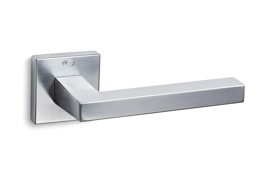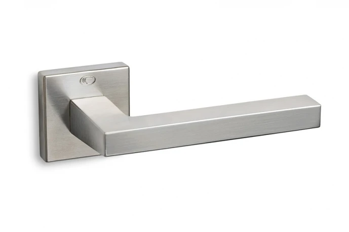 Πόμολο πόρτας με λιτή γραμμή σε χρώμα ματ χρώμιο.