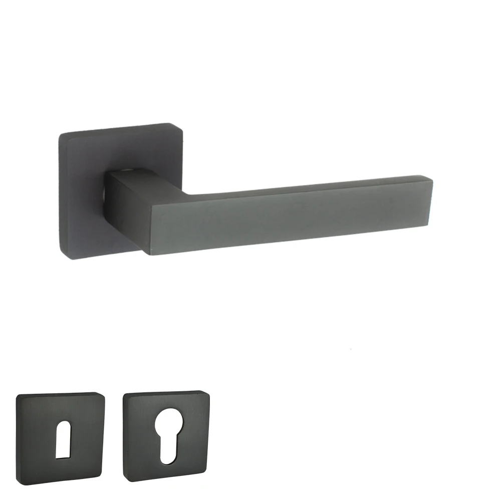 Πόμολο πόρτας μοντέρνο τετράγωνο σε διάφορα χρώματα με ροζέτα.