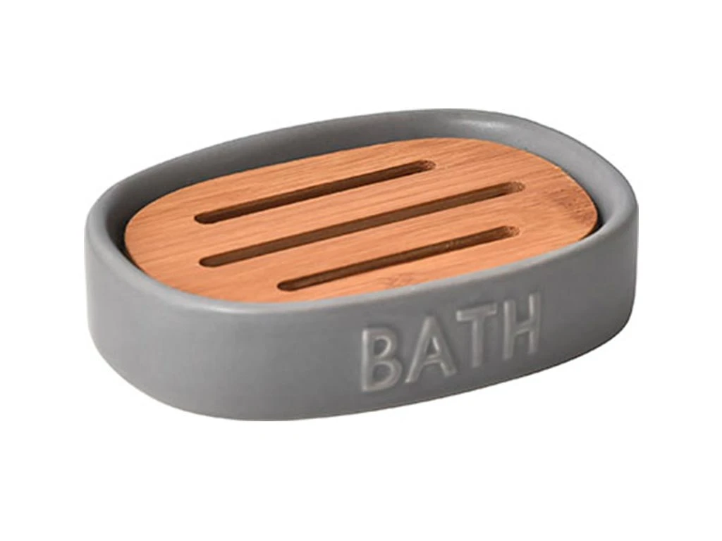Σαπουνοθήκη Μπάνιου με λεπτομέρειες Bamboo, γκρι χρώμα, διαστάσεις 12.5×9.5×3.2 εκ
