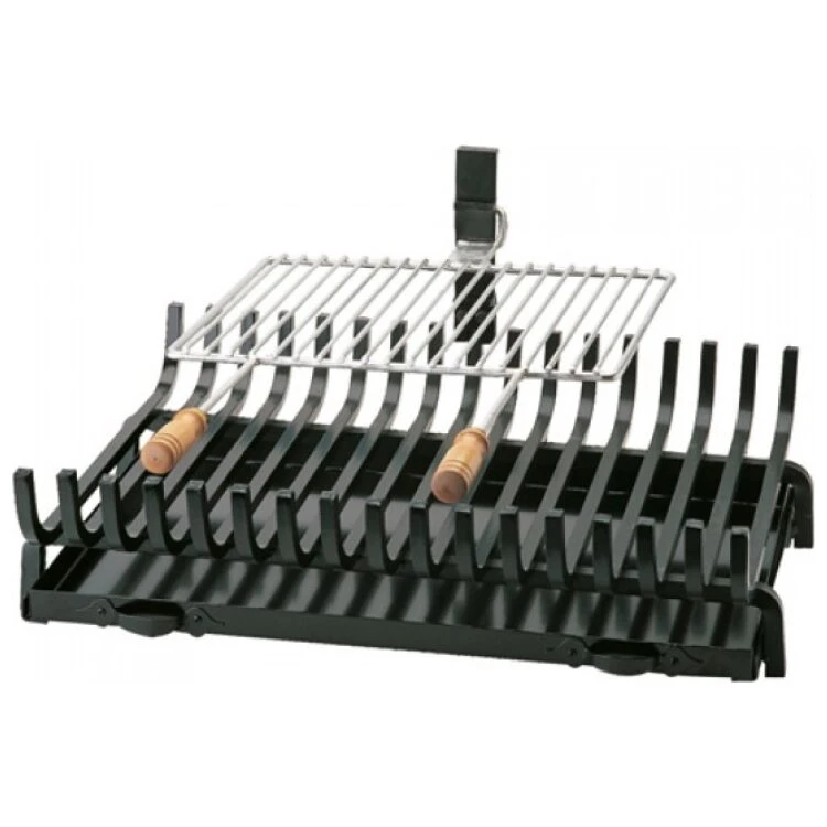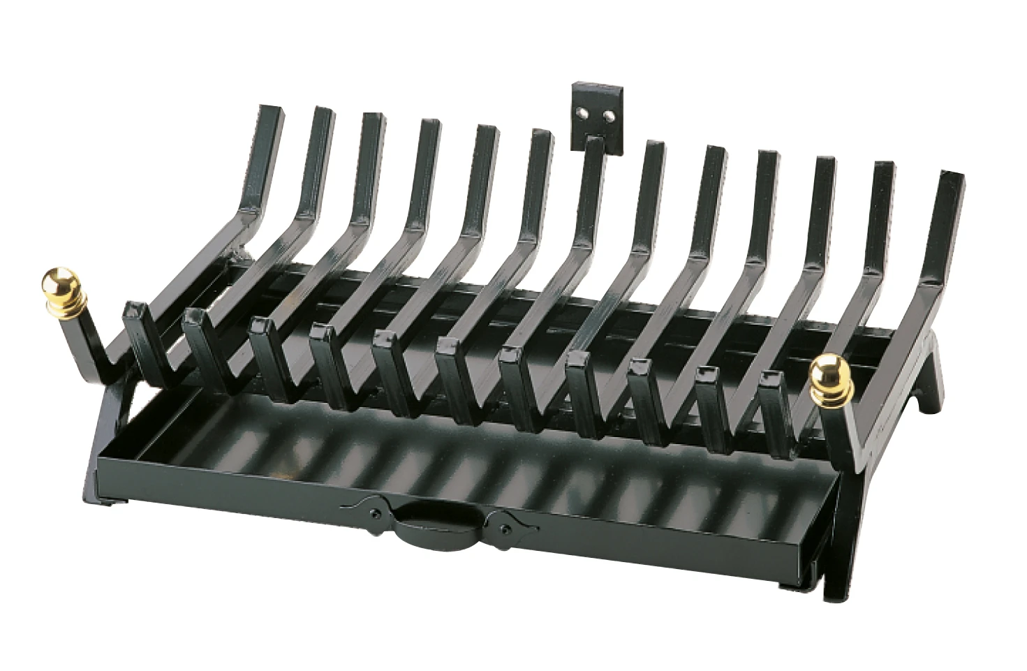 Σχάρα τζακιού μαύρη με σταχτοθήκη.