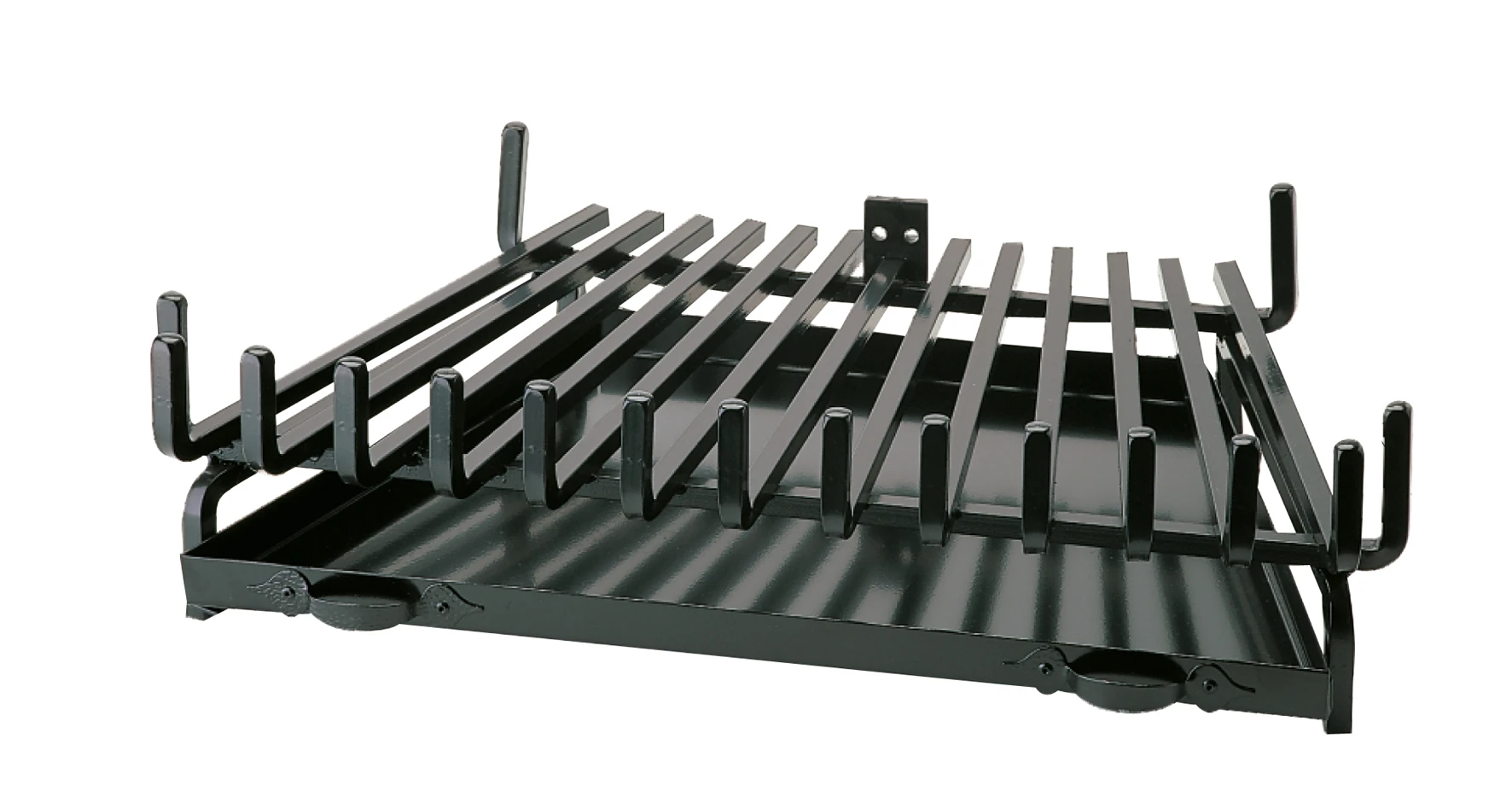 Σχάρα τζακιού μαύρη με σταχτοθήκη.