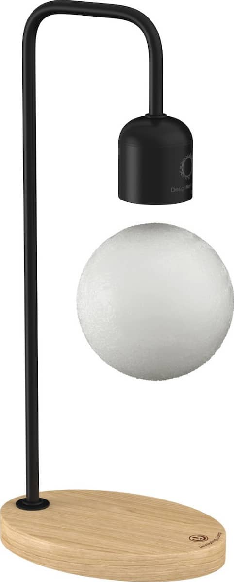 Χάρη σε κρυφούς μαγνήτες η λάμπα αυτή αιωρείται στον αέρα. Η οικεία ουράνια σφαίρα της σελήνης αιωρείται είτε αναμμένη είτε όχι, δημιουργώντας ένα πολύ ξεχωριστό θέαμα στο γραφείο σου.